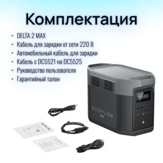 Портативная зарядная станция EcoFlow DELTA 2 Max выходной мощностью до 3000 Вт (в режиме X-Boost) для резервного и автономного питания дома, в автотрейлере, на кемпингах.